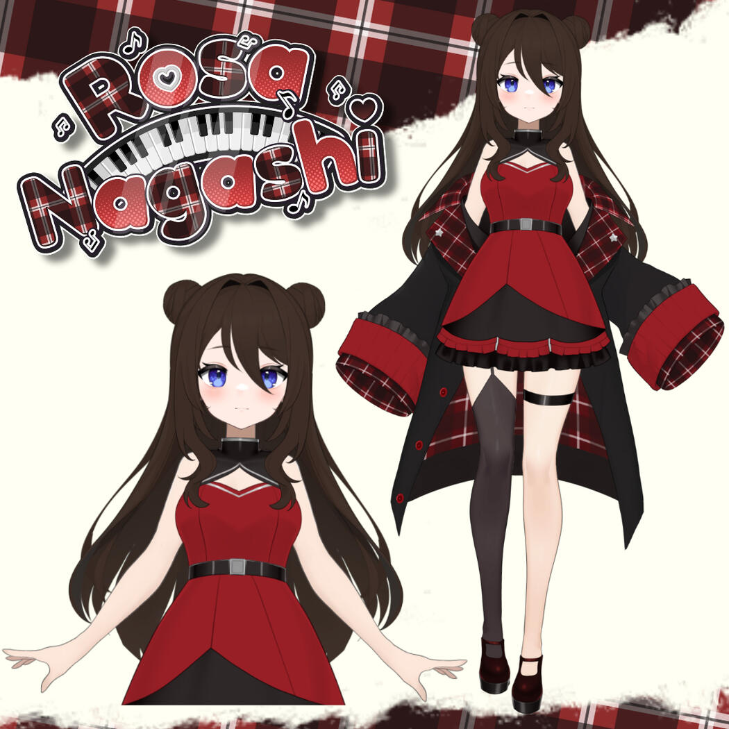 Above is the ref sheet of the current Rosa Nagashi vtuber model!